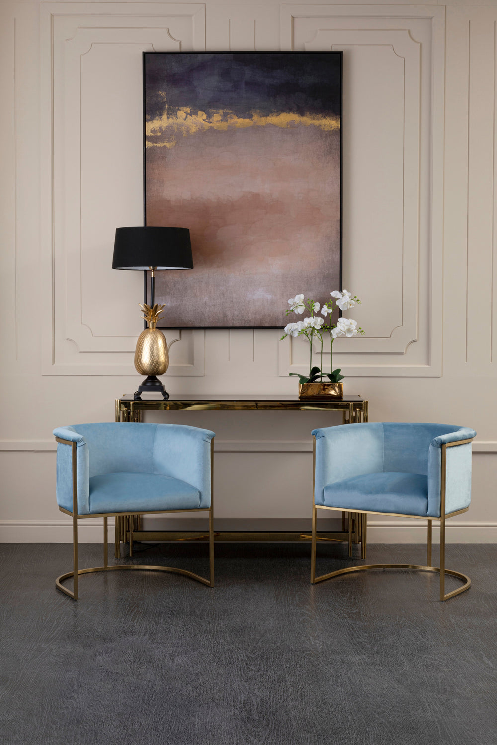 This artwork is framed in natural wood with a sleek black finish, creating a striking contrast to the warm tones on the canvas. Soft pink and mauve hues blend seamlessly, while a streak of gold foil adds a touch of metallic elegance.