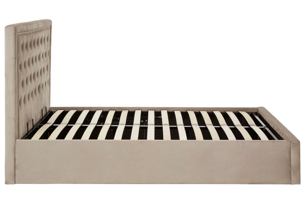 Bring comfort and sophistication to your bedroom with this contemporary ottoman bed. Designed with sleek lines and plush textures, it effortlessly combines style with functionality. The ottoman storage is easily accessible with gas lift pistons, providing a practical solution for maximizing space while maintaining a modern aesthetic.