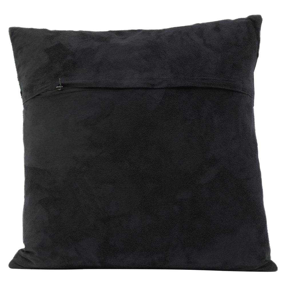 The Safria cushion effortlessly adds visual interest and comfort. Its front features a grey and black art deco print crafted from soft suede, while the back is finished with a simple leather backing for a sleek touch.