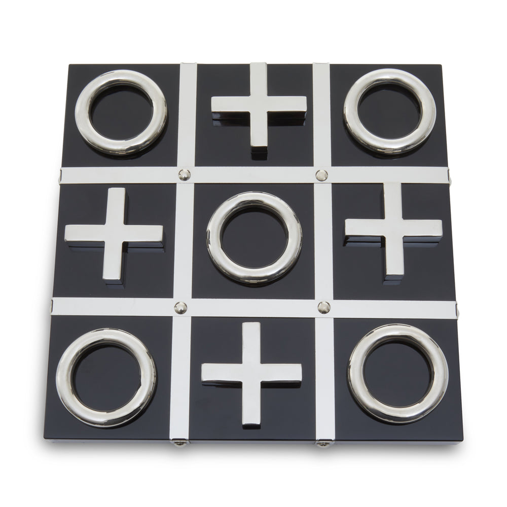 The Flos game set will add a visual display on a coffee table or desk with sculptural playing pieces. With a chic black base, this set includes 9 pieces with 4 Xs and 5 Os in luxe silver finish offering glamour and a playful accent.