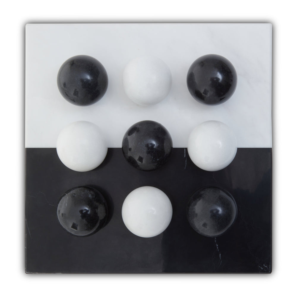 The Flos game set will add a three-dimensional visual display on a coffee table or desk with its geometric playing pieces. With a chic marble base, this game set includes nine pieces in a black and white finish offering a playful accent.