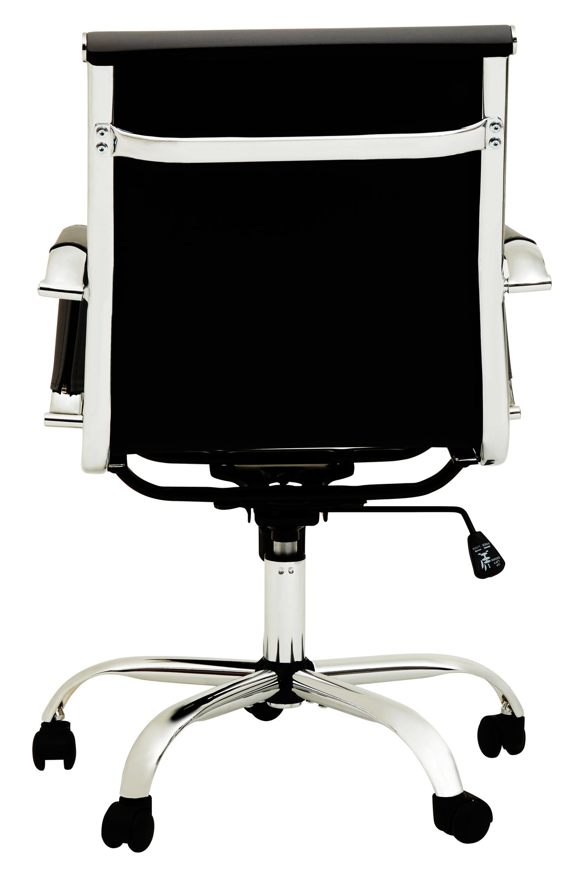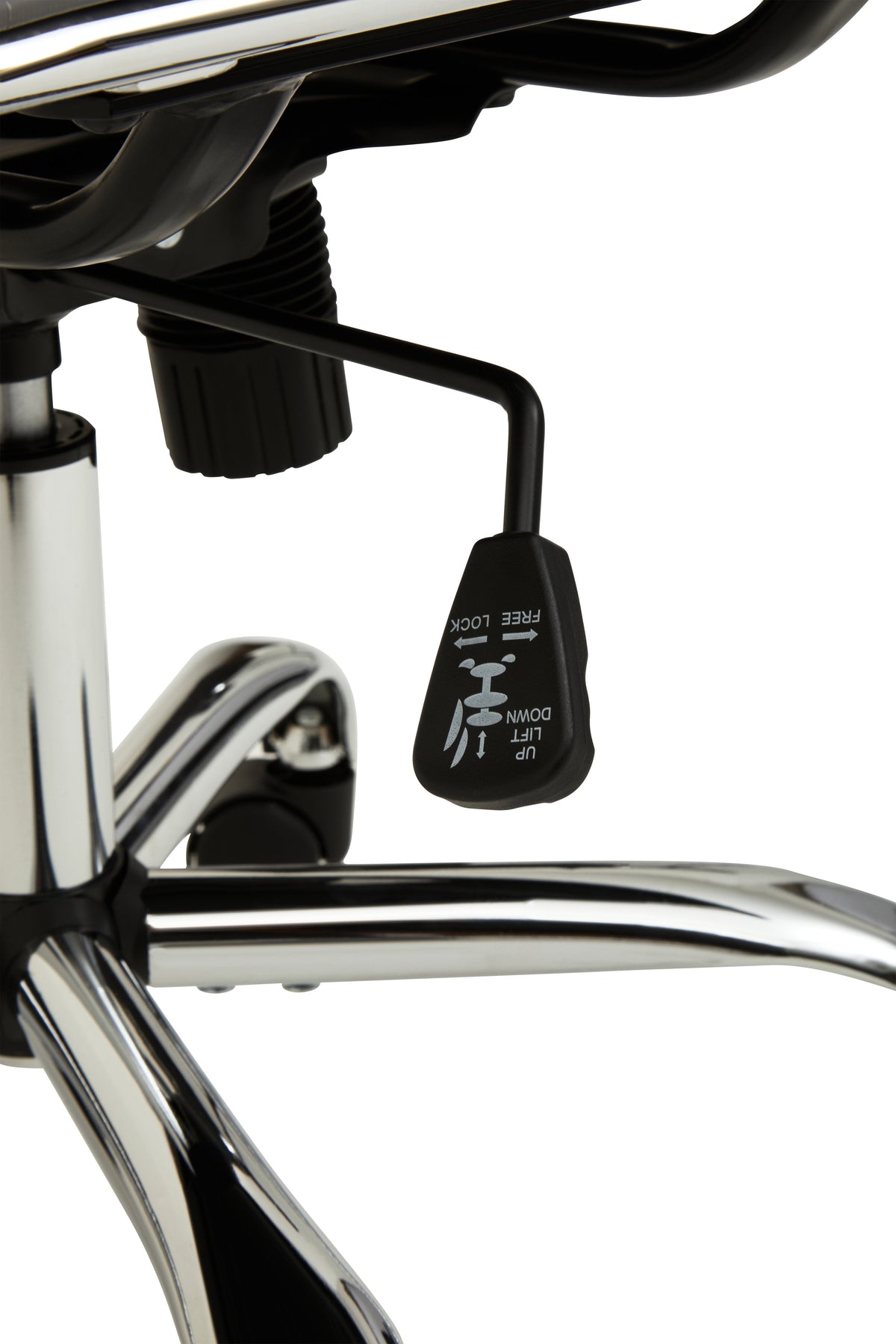 The black one-piece molded seat embodies modern simplicity, making it the perfect home office chair. Designed with a low back and integrated armrests for added comfort, it provides a sleek yet supportive seating experience. The sturdy chrome base with smooth-rolling wheels ensures effortless mobility and stability throughout the day.
